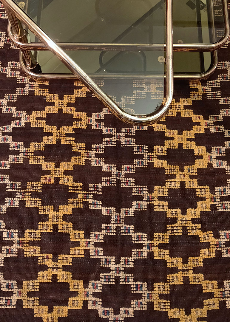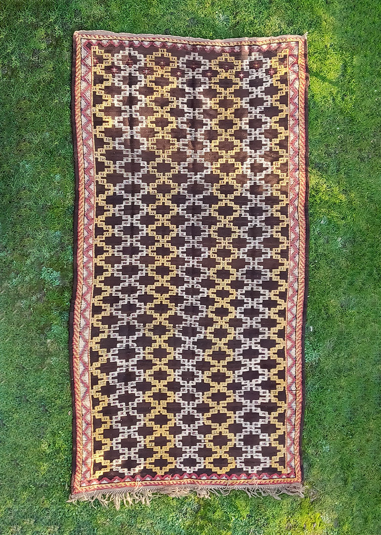It has to be seen, it’s a real beauty that comes alive even more in person. Endless interest and variation in the dye and the weaving and the subtle decisions of the weaver.